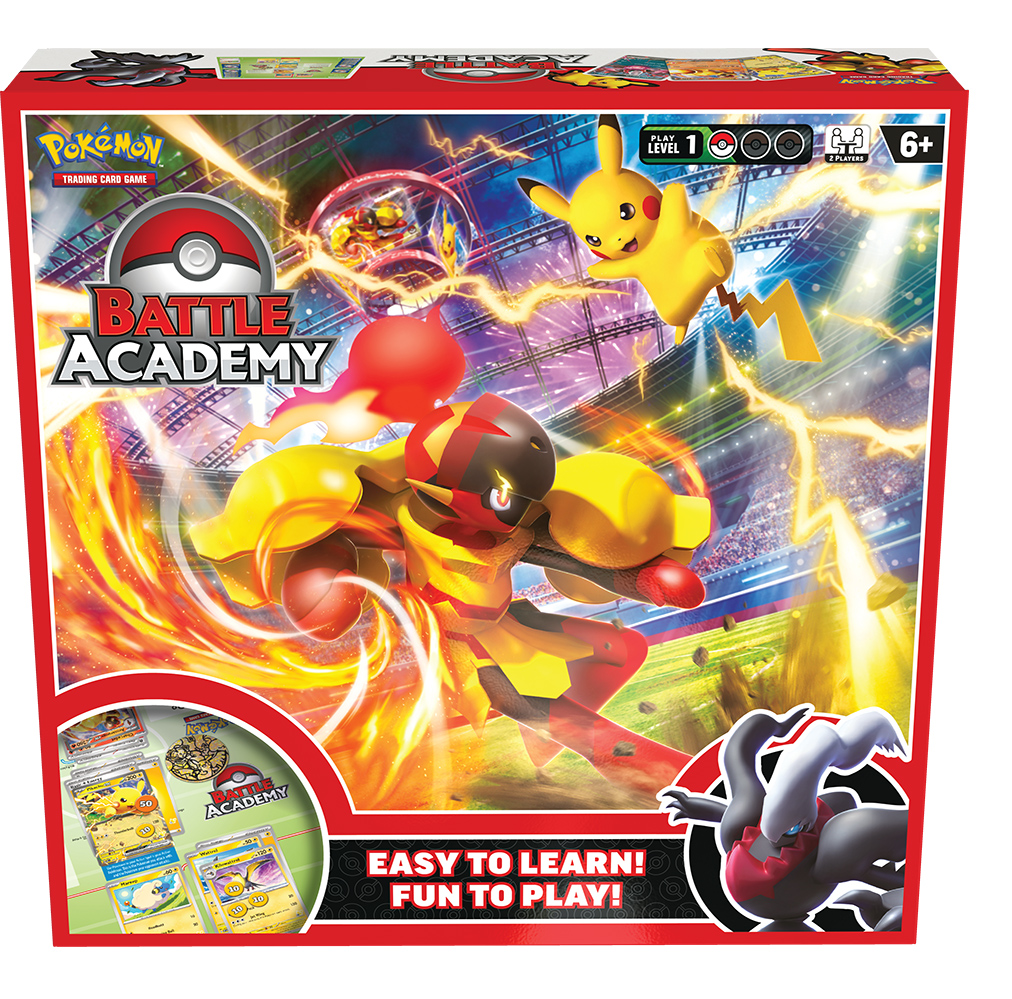 Battle Academy is the board game adaptation of the Pokémon TCG, one of the most beloved and best-selling trading card games in the world. Providing everything a Trainer needs to master the basics of the Pokémon TCG, Battle Academy offers fun family entertainment that combines strategic Pokémon TCG gameplay with a classic, easy-to-learn family game experience. The latest 2024 version of Battle Academy introduces the Pokémon ex gameplay mechanic and an updated lineup of fan-favorite Pokémon, including Armarouge, Pikachu and Darkrai. The 2024 version expands upon the original version of Battle Academy, which won Game of the Year at the 2021 Toy of the Year Awards due in part to its ability to give families a fun and accessible way to spend quality time together.