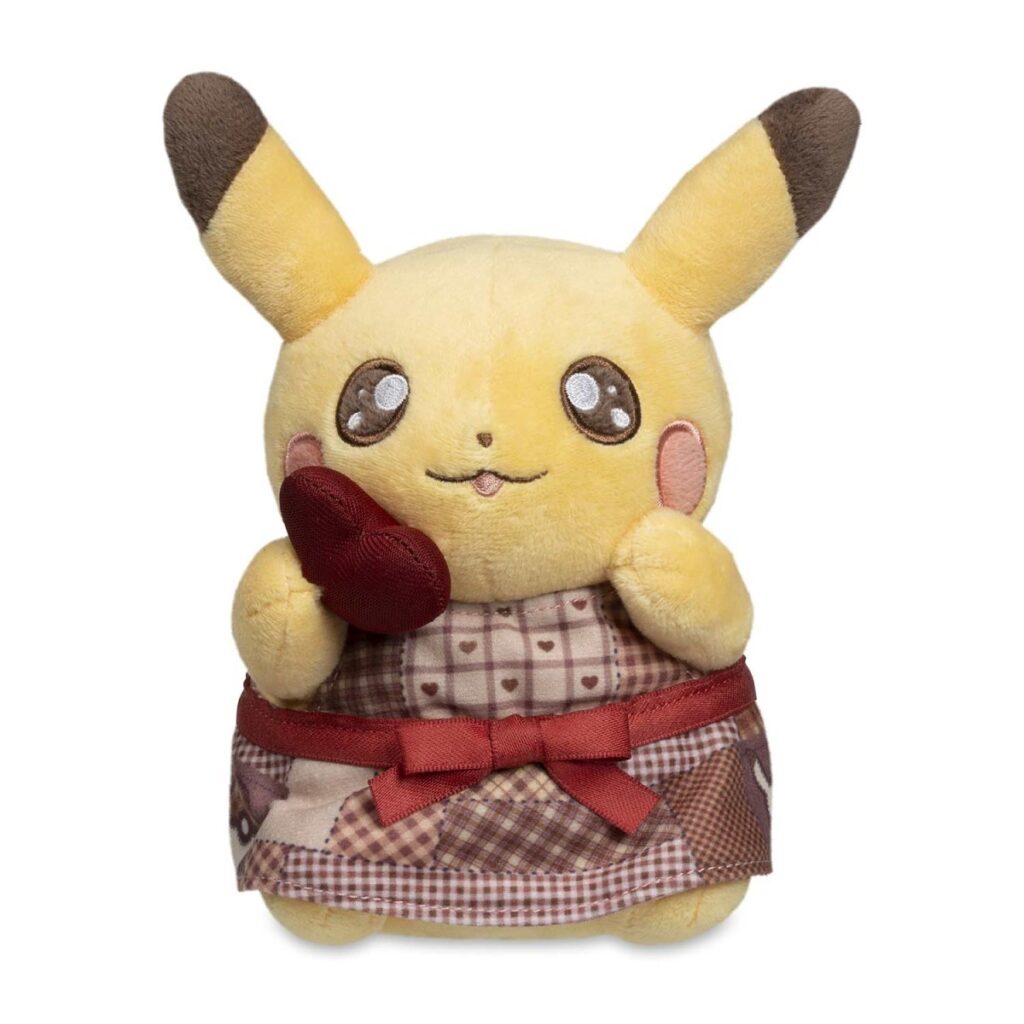 Pikachu is ready to deliver a little sweetness! Wearing a charming patchwork-style apron and holding a heart-shaped chocolate, this soft, embroidered plush captures Pikachu helping out at a chocolate shop run by its Trainer’s grandma. This lovable Electric-type Pokémon makes a perfect gift for Valentine’s Day, Mother’s Day or any moment worth celebrating.
